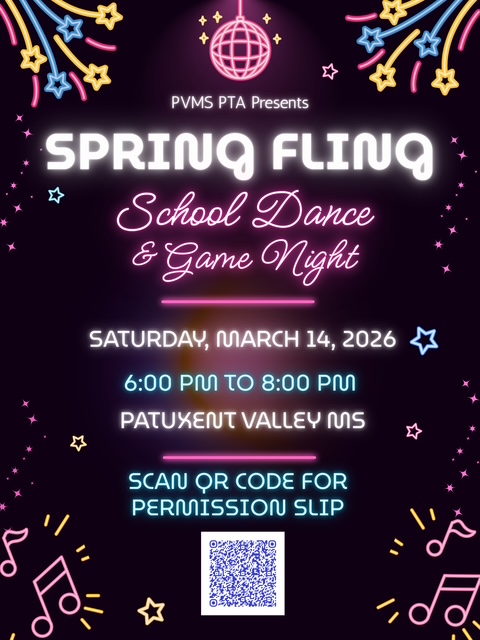 The PTSA will be hosting this fun event on Saturday, March 14, from 6-8 pm. There will be a DJ, dancing, games, snacks, and more. All current PVMS students are invited to attend. We cannot run this event without community support. Please consider volunteering to help!! A student permission slip and sign up genius will come out soon.